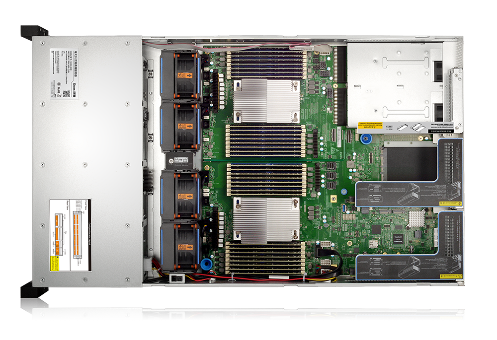 前置最大可支持8个3.5"/2.5"硬盘+后置4个3.5"或4个2.5"硬盘,为用户给予灵活的数据存储扩展能力;板载2个M.2接口,支持2块M.2 NVMe SSD ;可选配支持8个U.2 高性能NVMe 硬盘。
